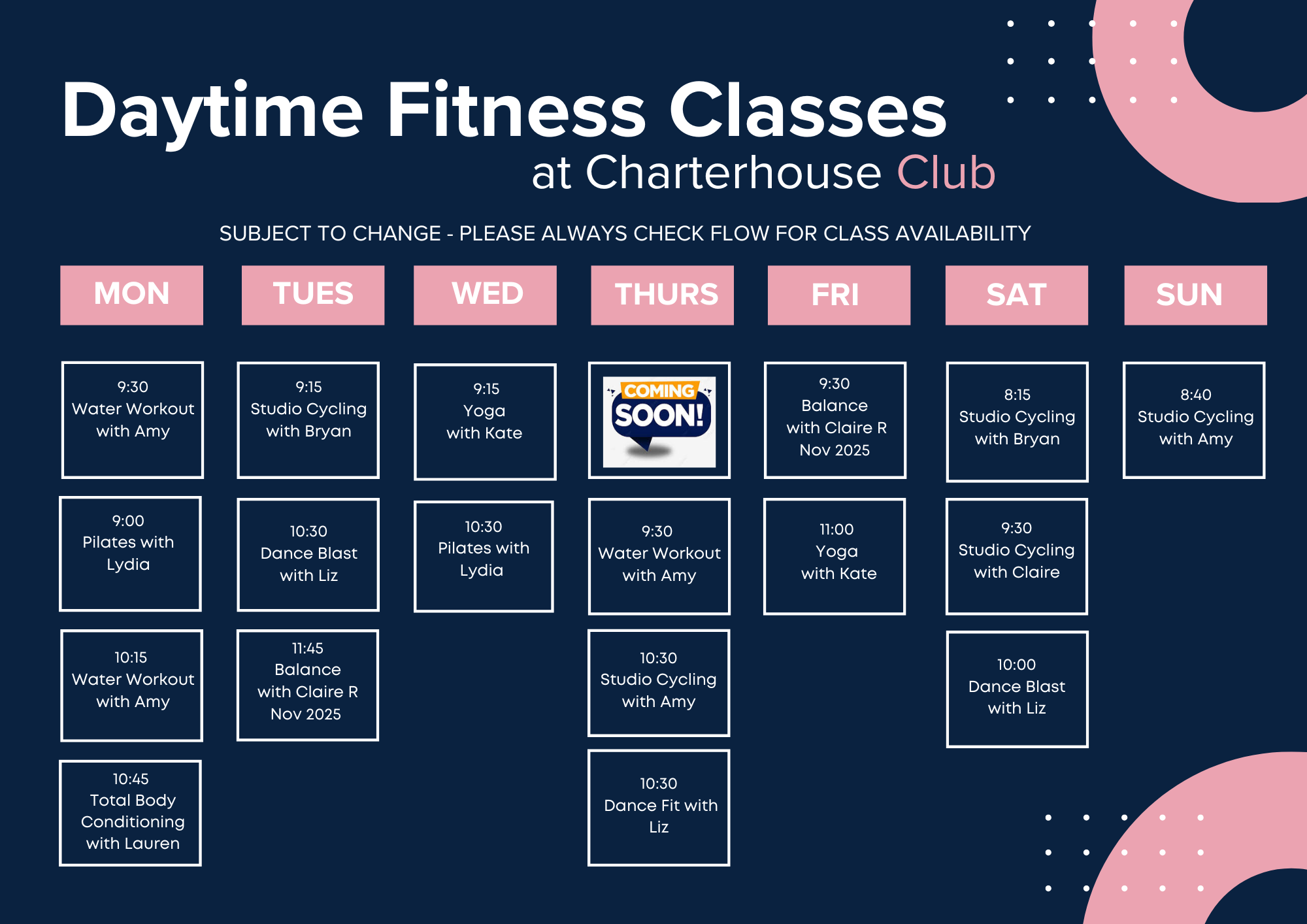 Please note that all timetables are subject to change and only correct at the time of printing, for the details on current availability please visit Flow via your member log in.