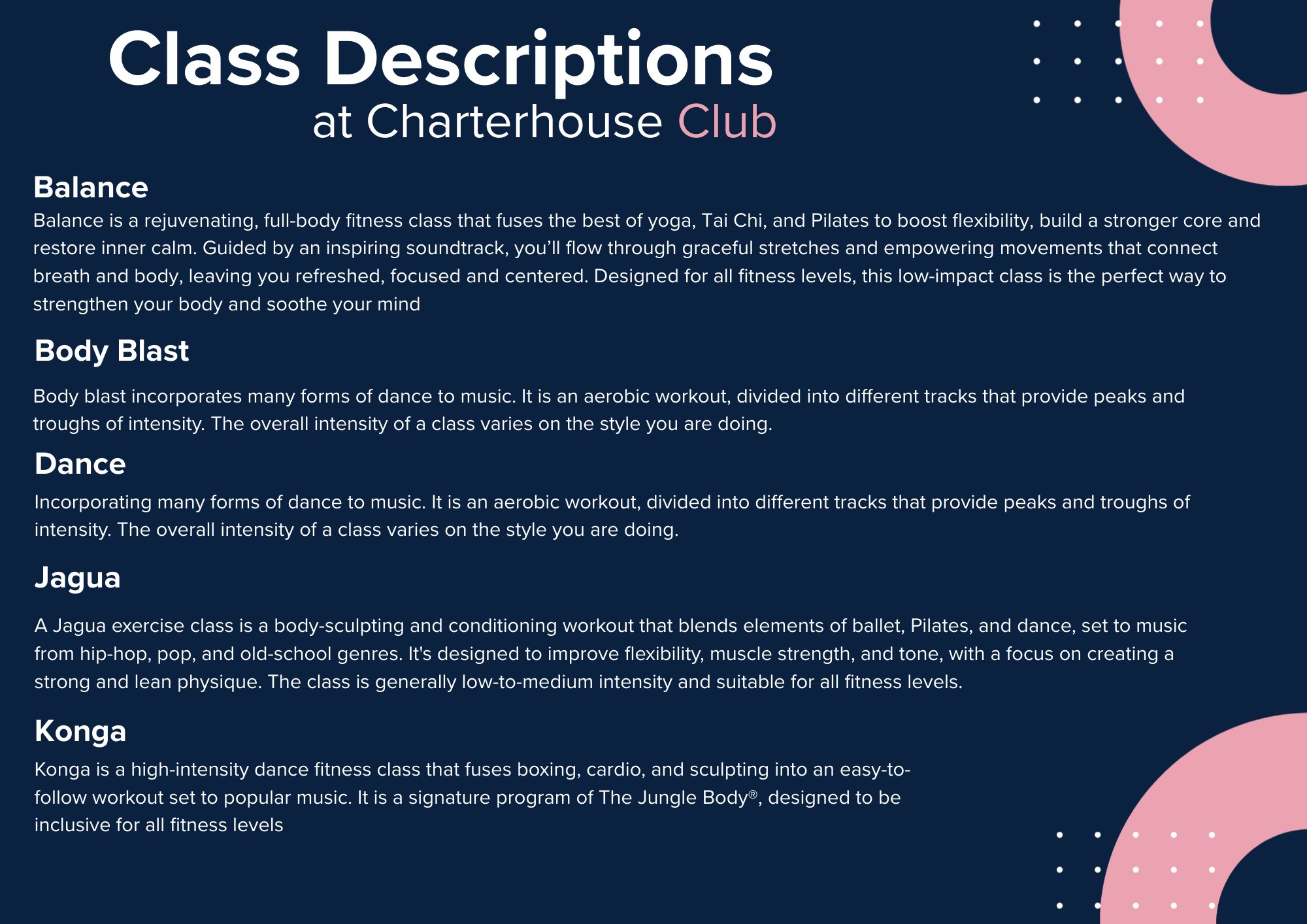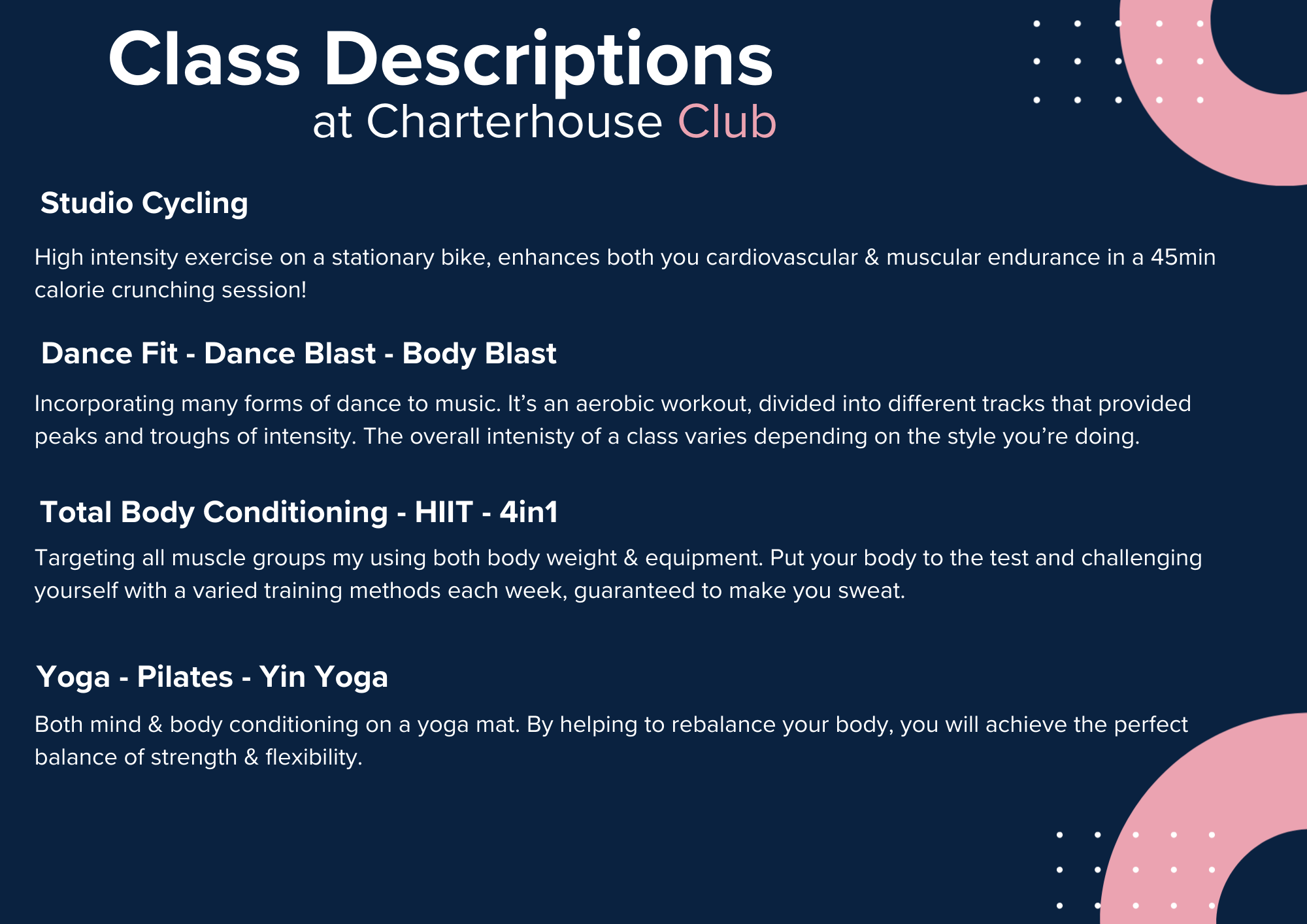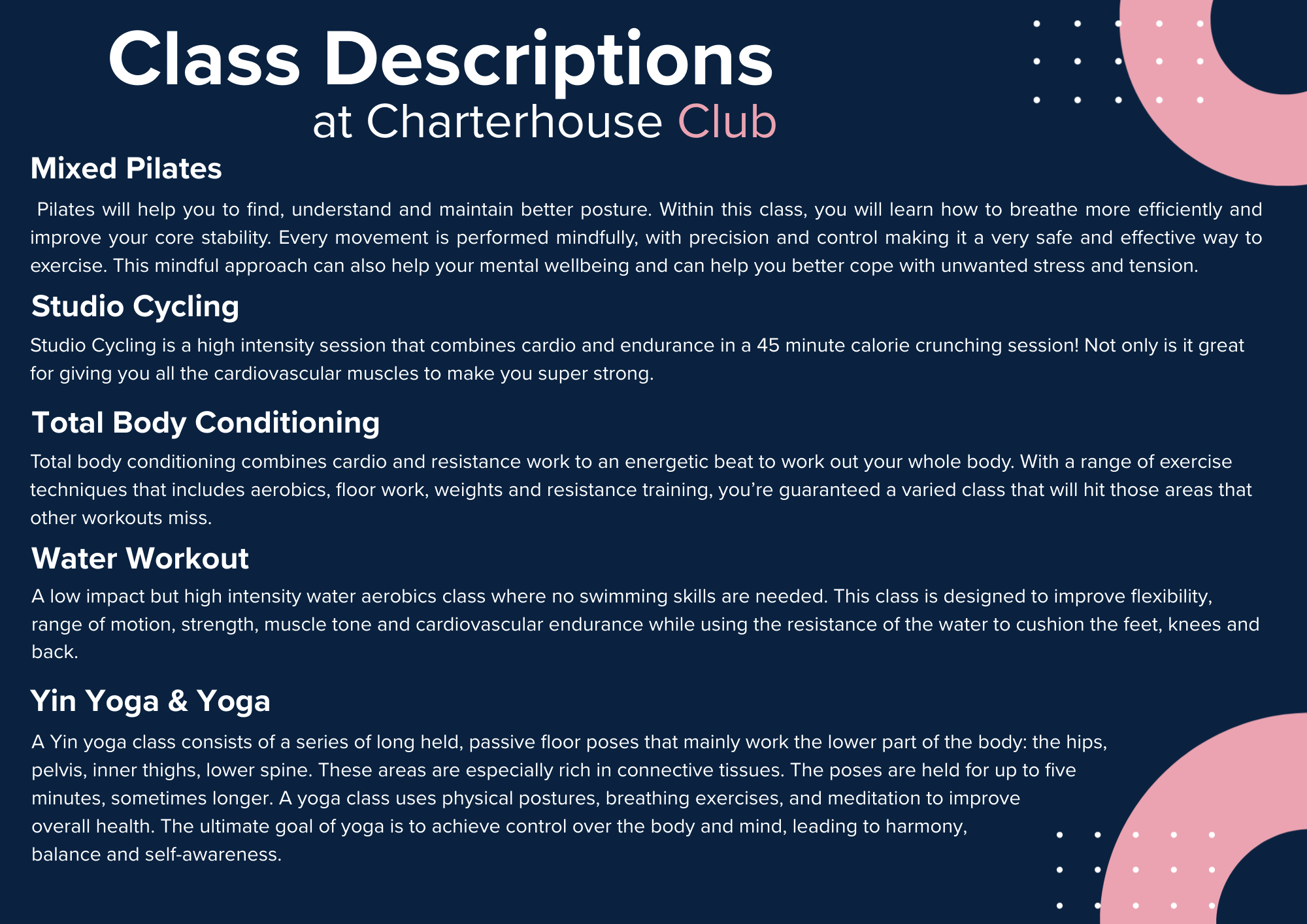 Welcome to our Group Exercise classes, whether you are new to classes or wanting to try something new; we have classes that we suit every ability and ensure you fulfil your fitness needs.